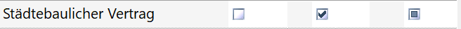 Nützlich könnte das u. a. sein, wenn man beim Digitalisieren alten Planrechts nicht weiß, ob vor Jahrzehnten beim Erlangen der Rechtskraft des Planes ein Städtebaulicher Vertrag vorlag und eine aktuelle Recherche unverhältnismäßig ist, weil die Pflichten eines Investors ohnehin verjährt sind. Der XPlanExport behandelt den Status Unbekannt dahingehend, dass das Attribut gar nicht erst generiert wird. Das bedeutet auch, dass Tristate-Attribute nur konfiguriert sein dürfen, wenn XPlanung das betreffende Sachdatenfeld nicht als Pflichtattribut ansieht!