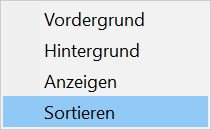 Im Kontextmenü steht neben den Befehlen für Vordergrund, Hintergrund und Anzeigen auch der Befehl "Sortieren" zur Verfügung, welcher die jeweilige Liste alphanumerisch sortiert. |