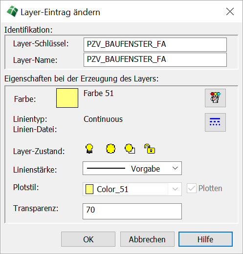 In der aktuellen Bibliothek der PlanzV90 wurde hiervon Gebrauch gemacht, indem den überbaubaren bzw. nicht überbaubaren Grundstücksflächen ein Transparenzwert von 70 für den Layer der Solidschraffur zugewiesen wurde. |