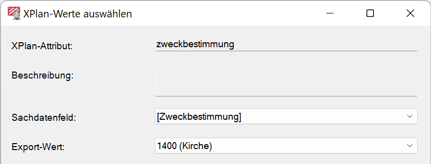 Sollte aber ein anderer, legaler Eintrag aus den bekannten Enumerationen der XPlanung gewählt werden (z. B. Schule), so hat dieser Vorrang vor dem fest konfigurierten Eintrag Kirche! Der hinterlegte Export-Wert wird auch für den XPlanImport verwendet. Der Import durchsucht alle Planzeichen der aktuellen Bibliothek, wo ein gewünschter Export-Wert definiert ist. Ist es beim Gemeinbedarf der Wert 1400 (Kirche), wird das Programm nur bei dem Planzeichen "Kirchliche Zwecke dienend" fündig. Neben allen Export-Werten einer eventuell hinterlegten Enumerationsliste und einer Leerzeile steht in der Klappliste für den Export-Wert der Eintrag "ausschließen, wenn definiert" zur Verfügung. Diesen Eintrag benötigt WS LANDCAD, wenn es in einer XPlanGML zu Mehrdeutigkeiten für den Import kommt. Das prominenteste Beispiel ist eine gleichzeitige Belegung der Attribute allgArtDerBaulNutzung und besondereArtDerBaulNutzung. Die XPlanGML könnte z. B. eine Gemischte Baufläche mit der besonderen Nutzung Dorfgebiet beschreiben. Dem Import stehen dann zwei Planzeichen als Entsprechung zur Verfügung: das Gemischte Baugebiet und das Dorfgebiet. Wenn in der Konfiguration des Gemischten Baugebietes nun das Attribut besondereArtDerBaulNutzung den Wert "ausschließen, wenn definiert" aufweist, kann der Konflikt dadurch gelöst werden, dass ein Gemischtes Baugebiet für den Import nicht infrage kommt, weil die Erkennung dieses Planzeichens aufgrund der besondereArtDerBaulNutzung ausgeschlossen wurde. Der Importvorgang muss folglich nach weiteren Treffern suchen und wird abschließend beim Dorfgebiet fündig!