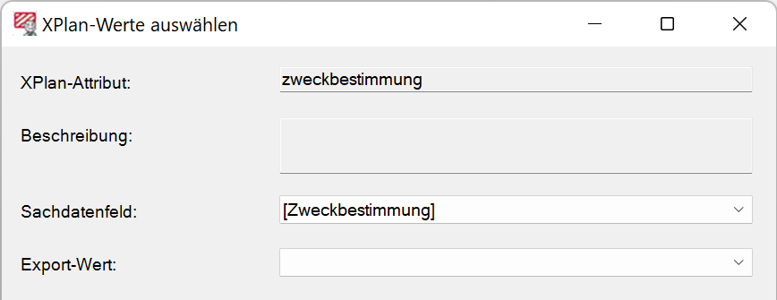 Der Dialog XPlan-Werte auswählen öffnet sich, wenn man im Fenster Exportdaten das Klapplistensymbol am rechten Rand einer Attributszeile anklickt:
