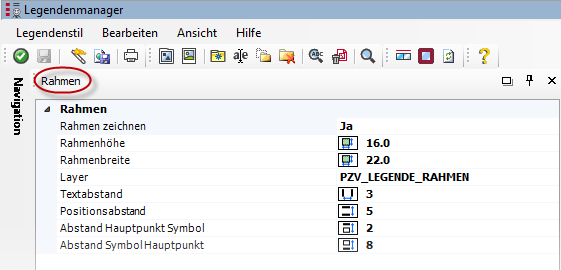 Je nach Einstellung wird ein Rahmen, das Legendenfeld, um die Symbol-Grafik gezeichnet oder nicht. |