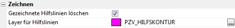 Für alle Umgrenzungsfestlegungen, bei denen es möglich ist vollständig neue Konturen zu erzeugen, wird eine Hilfslinie (Hilfskontur) erzeugt. Im Setup lässt sich unter der Kategorie Zeichnen der entsprechende Layer festlegen. Eine weitere Option bestimmt, ob die Hilfslinien nach der Anwendung gelöscht werden.