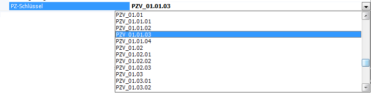 Die Zuordnung des PZ-Schlüssels erfolgt durch Auswahl aus einer Klappliste, welche alle verfügbaren Planzeichenschlüssel der Systemdatenbank beinhaltet. Möchten Sie das Planzeichen einem gänzlich neuen Schlüssel zuordnen, muss dieser zuvor mit den Funktionen im Fenster Objektschlüssel erstellt werden.