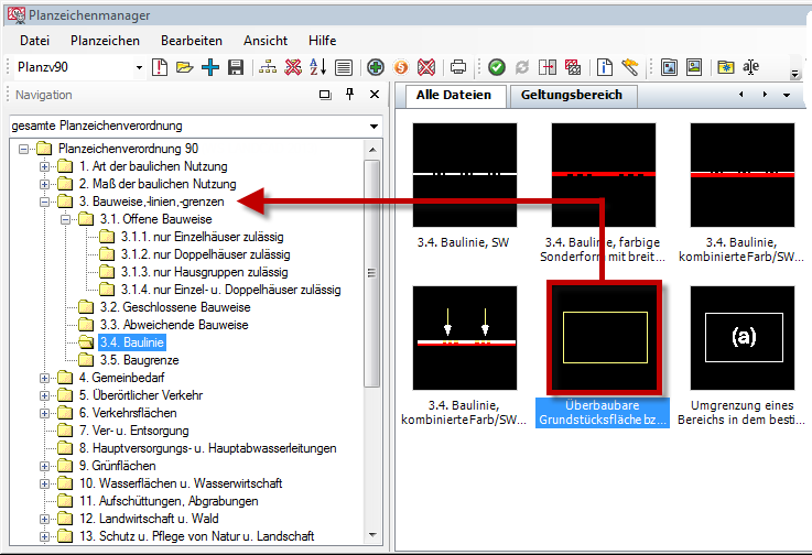 Vorhandene Planzeichen können innerhalb der aktuellen Bibliothek mit Drag & Drop kopiert werden.