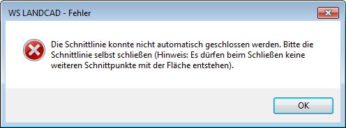 In dem Beispiel kann ein Teil der Fläche nicht abgetrennt werden, weil aus der roten Schnittlinie (1) nicht automatisch eine Fläche gebildet werden kann.