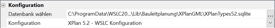 - Konfiguration – Hier ist die Konfiguration in den Bibliotheken zu wählen, welche für die Verarbeitung des XPlanungs-Standards verwendet werden soll. Die möglichen Konfigurationen stehen in einer Klappliste zur Auswahl.
