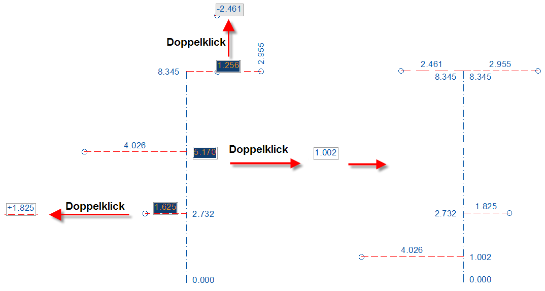 Messwerte lassen sich am einfachsten ändern, indem ein Doppelklick auf die Messtexte ausgeführt wird. Hierbei erscheint der Text in einem Editierdialog und Sie können direkt den gewünschten Wert eingeben. Beachten Sie hierbei bitte die folgenden Regeln: