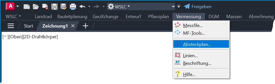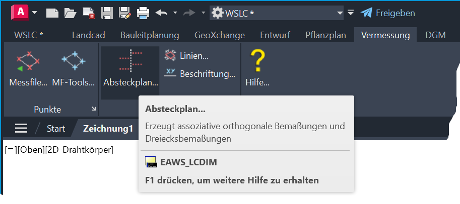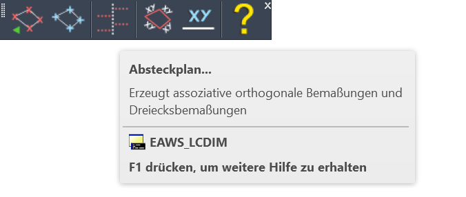 Zur Befehlsauswahl stehen je nach verwendetem CAD-System und verwendeter Konfiguration ein Register in der Multifunktionsleiste, ein Pull-down-Menü und ein Werkzeugkasten zur Verfügung, welche jeweils die gleiche Befehlsstruktur aufweisen.