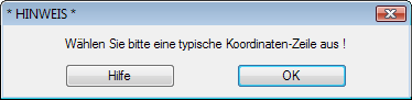 Zu Beginn des eigentlichen Dialoges werden Sie zunächst aufgefordert, eine typische Koordinatenzeile auszuwählen. Ihre Koordinatendatei wird dazu automatisch in den Editor geladen. |