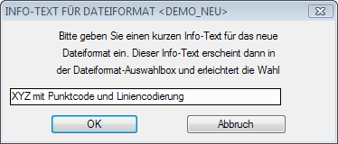Nachdem alle Keys definiert wurden, können Sie das Format unter einem beliebigen Namen, zusammen mit einer Kurzerklärung, speichern. Es ist damit in die zentrale Format-Definitionsdatei MESSFILE.FRM aufgenommen worden.