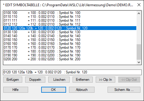 Editierung von Symboltabellen
