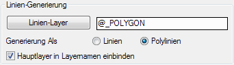 Die Festlegung über die verwendete Variante kann im Konfigurations-Dialog eingestellt werden. Messfile verwendet (als Voreinstellung) einen Layer mit dem Namen LAYERPOLYGON, wobei LAYER der Name des Layers für die Messpunkte ist. Dieser Layer ist vor dem Laden über das Eingabefeld LAYER im Hauptdialog oder auch im Konfigurations-Dialog einstellbar.