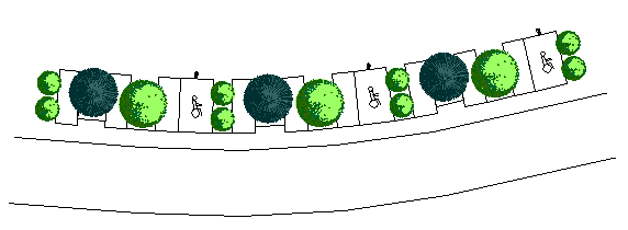 Zeigen Sie den Start- und Endpunkt einer Polylinie und anschließend die Seite, auf welcher die Parkplätze eingefügt werden sollen. Nach diesen grafischen Angaben erscheint die Dialogbox des Parkplatzzählers, welche die maximal auf der gezeigten Strecke einzufügenden Parkplätze bilanziert. Sie können den Vorgabewert der berechneten Stellplätze in dieser Dialogbox manuell verändern, um eine definierte Anzahl an Stellplätzen zu generieren. Nach der Bestätigung des Parkplatzzählers wird das Parkplatzmuster inkl. aller Sonderfälle mit der definierten Anzahl generiert.