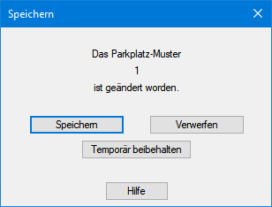 Jedes Parkplatzmuster kann über den Befehl Parkplatzmustereigenschaften aus dem Pull-down-Menü Bearbeiten oder dem Kontextmenü nachträglich editiert werden.